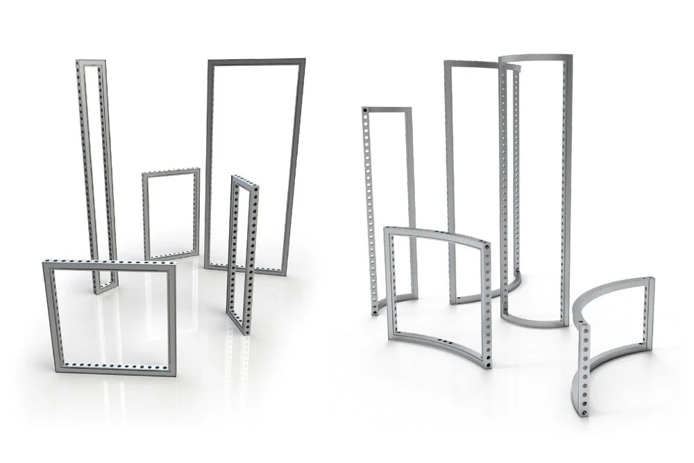 Modular frames are lightweight aluminum structures that click together without tools. They scale up or down depending on your layout and wrap in fabric graphics that look seamless and sharp.